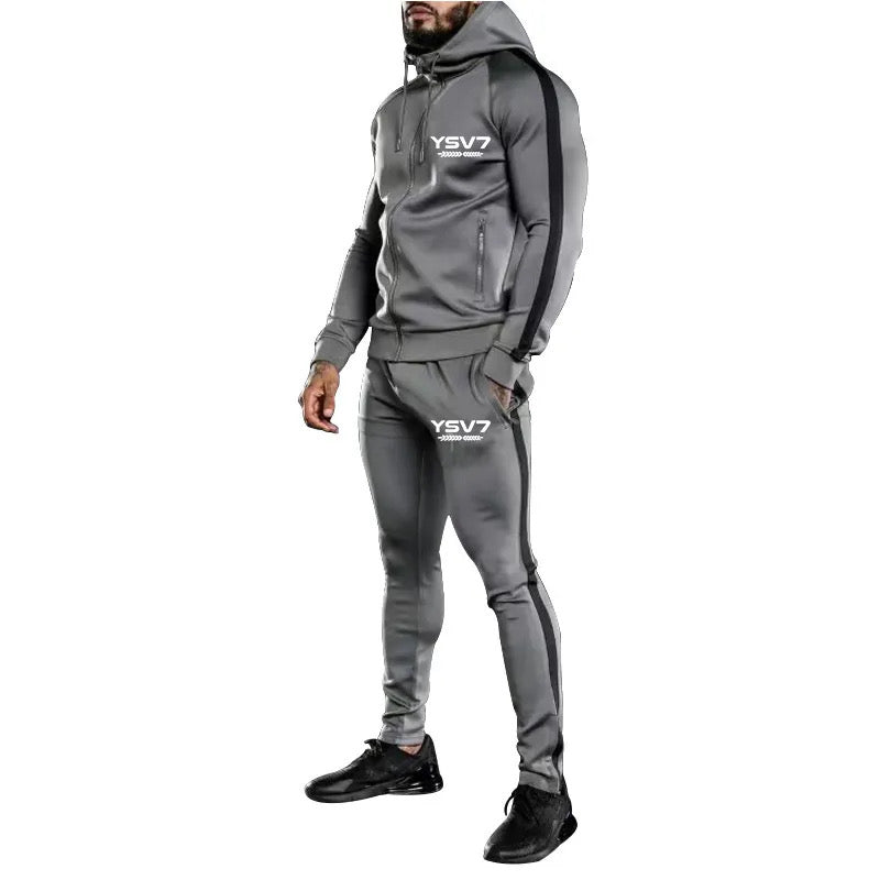 MENS DARK GREY HOODED FITTED TRACKSUIT