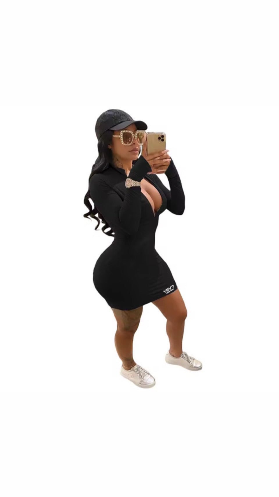 Keep It snatched and show off those curves in our YSV7 Shapewear beautiful Black zipped bodycon dress with logo at hem. Designed to be tight fitted, flattering and to hug the curves of the body. Made from stretchy Lycra material that allow them to conform to the shape of the wearer. Suitable for day wear with trainers or evening wear with heels.