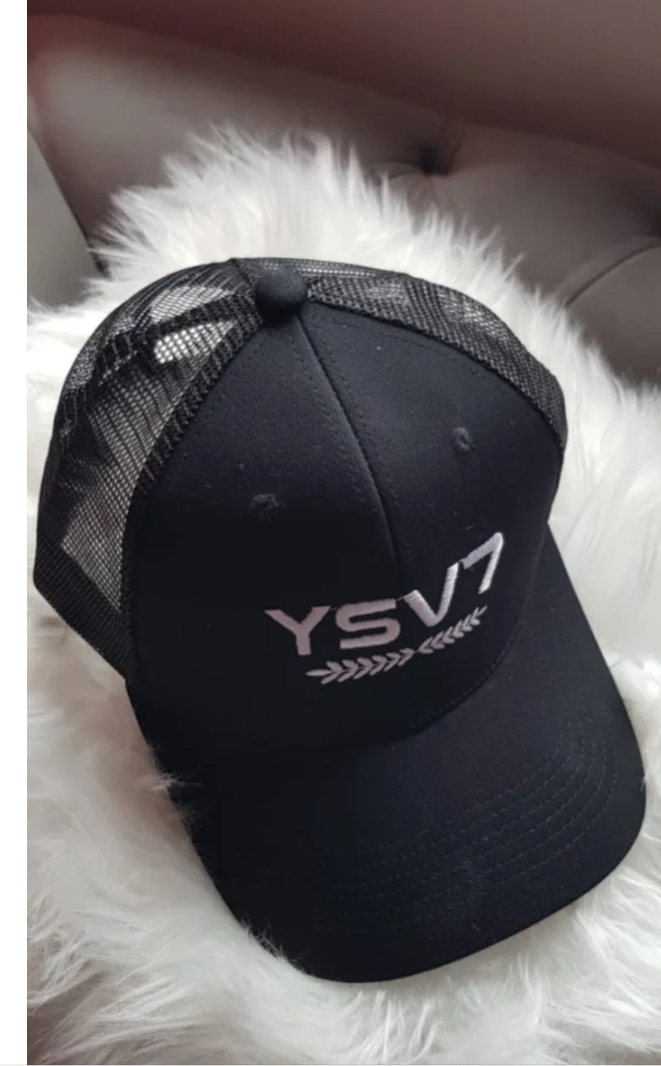 Step out in style in our YSV7 Black Snapback Mesh Cap with white logo.