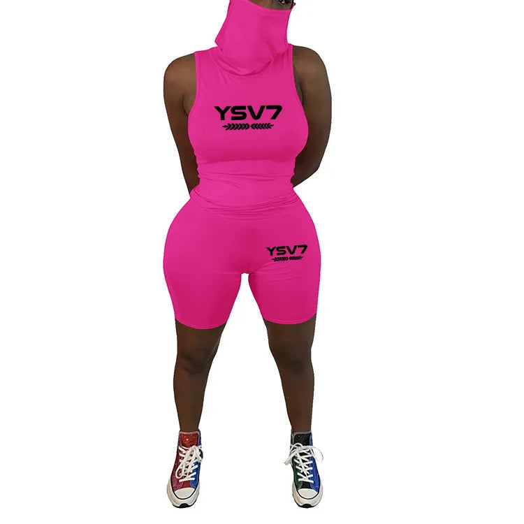 WOMENS MASK PINK TWO PIECE SHORT SET