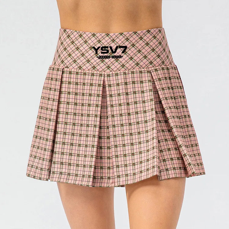 This YSV7 WOMENS PINK CHECK TENNIS SKIRT is the epitome of elegance on the court. With its sleek pink design and distinct YSV7 logo, it exudes sophistication and exclusivity. Made with premium materials, this skirt is both stylish and functional, allowing you to play your best while looking your best. Perfect for the luxury-loving athlete.