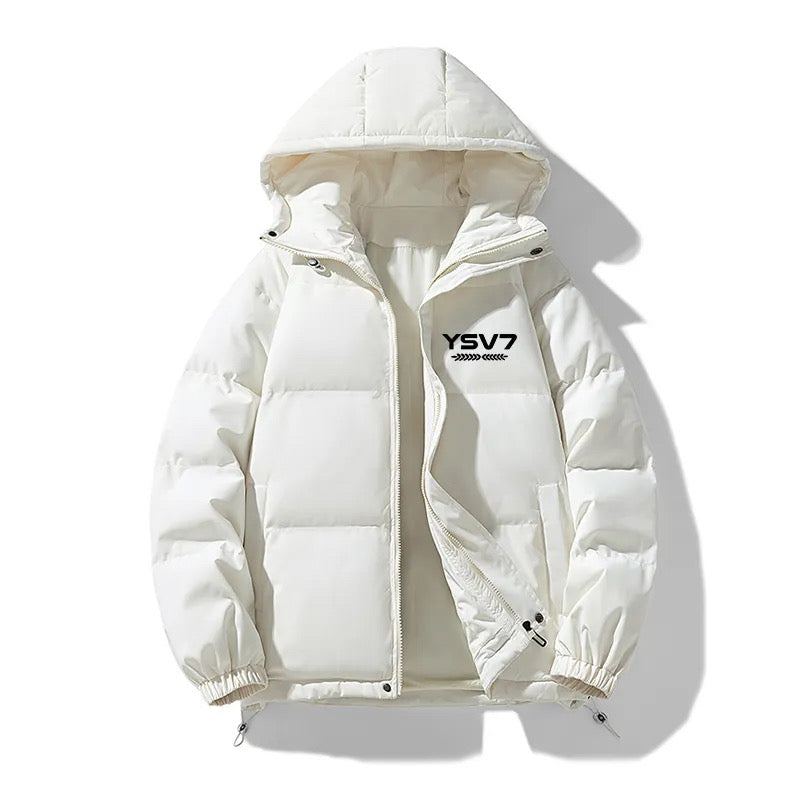 UNISEX PADDED WHITE REMOVABLE HOODED FITTED JACKET